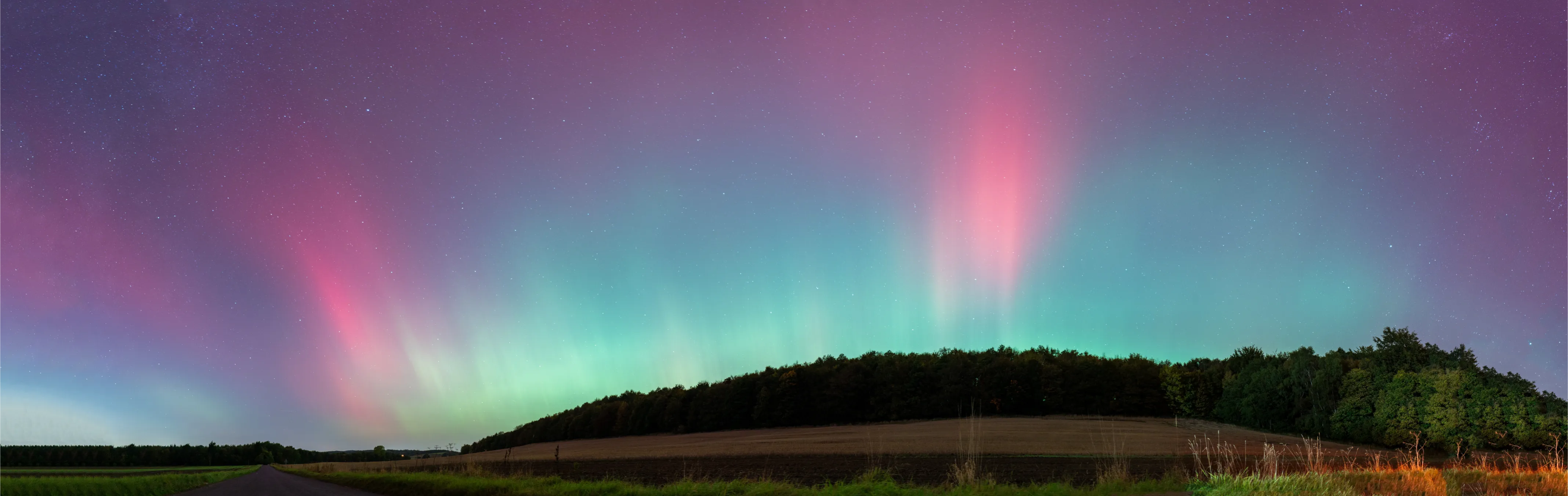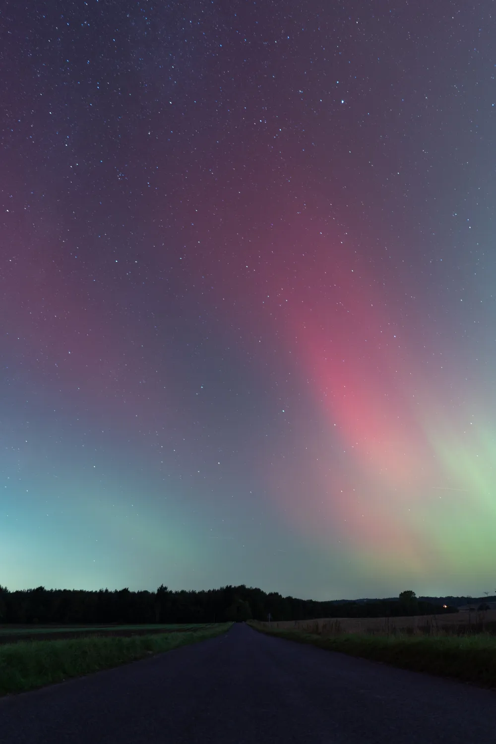 Captured on a perfectly clear night on 10th October 2024, this shoot documents a truly rare spectacle. The Aurora Borealis over Coneysthorpe, North Yorkshire. Away from the glare of city lights, the sky erupted into sweeping shades of blue, green, and subtle magenta tones that danced across the horizon, glowing from behind a silhouetted tree line.