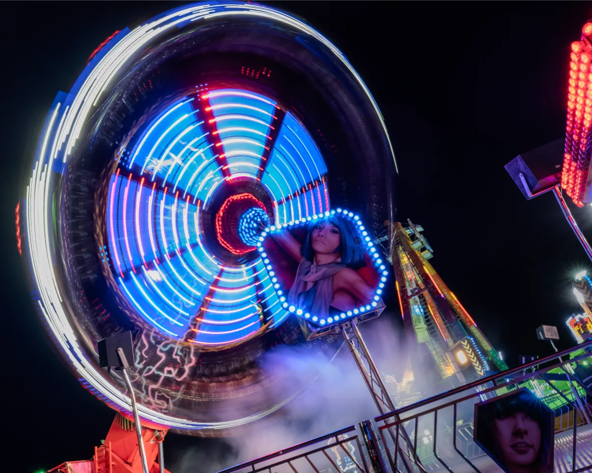 Held on October 27th, 2025, the event blended the thrill of a large scale funfair with an explosive fireworks show, complete with live music and headline performances. I took the opportunity to experiment with handheld long exposures, creating dynamic motion blurs of spinning rides and neon lights. The kind of hypnotic energy you can only feel at night under the fairground glow.