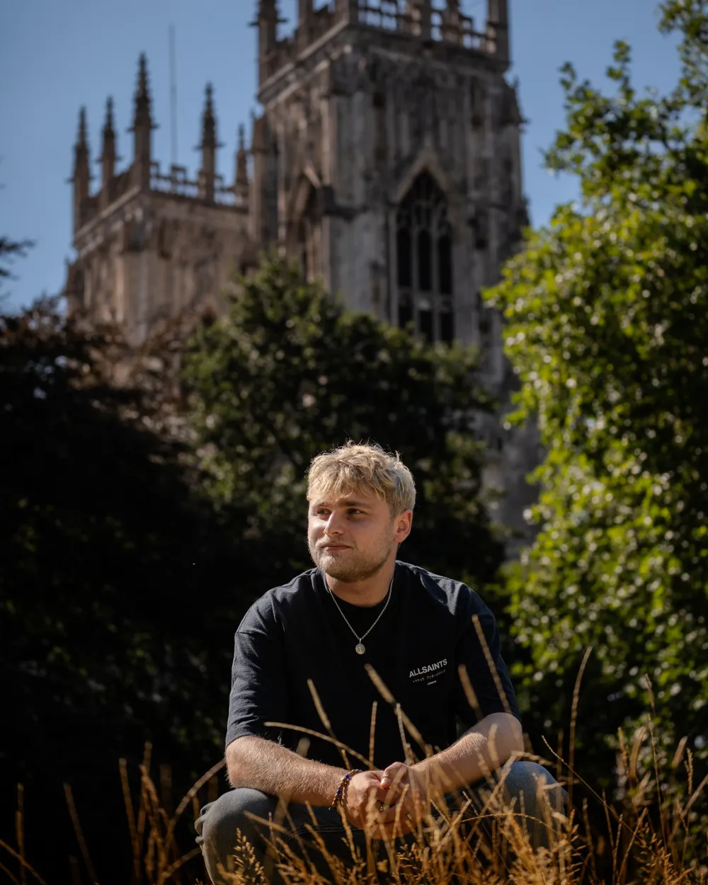 This session captured Bezza in a series of portraits around York’s most iconic backdrops, from the ancient city walls and cobbled streets to the majestic York Minster towering in the background. The combination of golden summer light, urban textures, and natural tones helped shape a series that feels both authentic and aspirational.