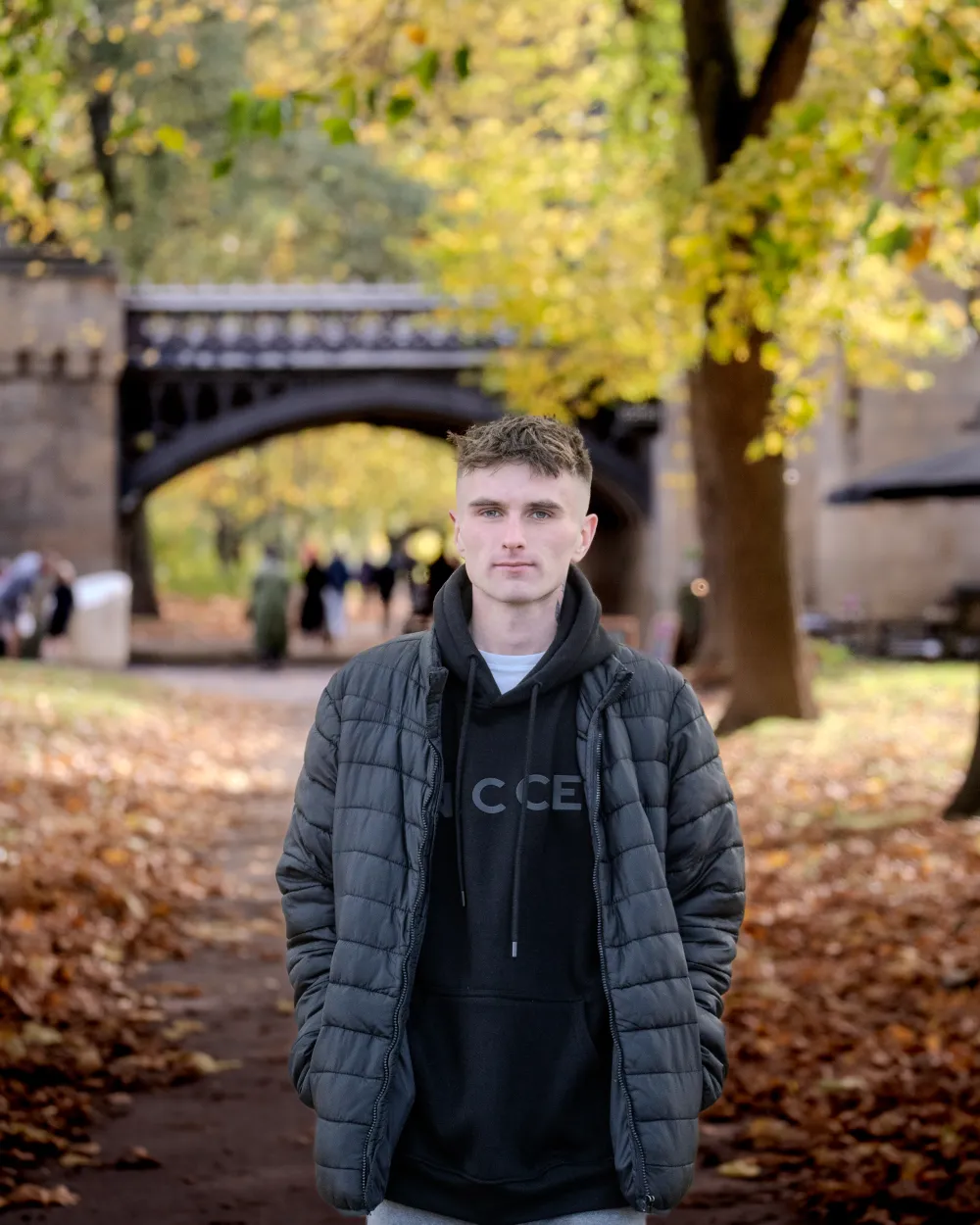 Captured on a crisp autumn afternoon in York, this press shoot spotlights Liam Marshall, known across the scene as LMarsh | A House and Commercial DJ with a strong presence across York and Leeds.