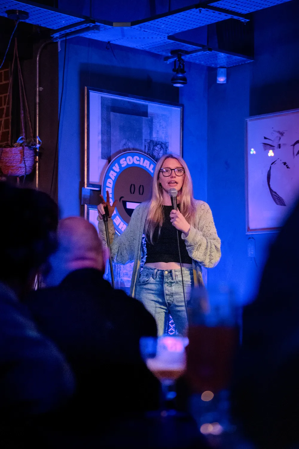 On the 27th of April 2025, I captured The Sunday Social Comedy Club at Rise, Bluebird Bakery in Acomb, York. A warm, intimate venue that transforms from a café and bakery by day into a vibrant event space by night.